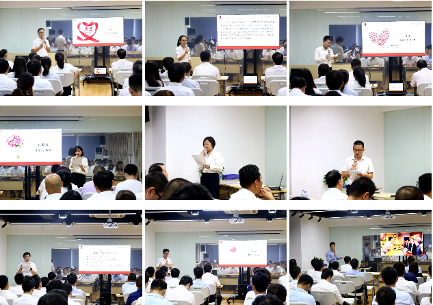 9位員工緊緊圍繞“感恩做人,用心做事”的主題進行分享:
