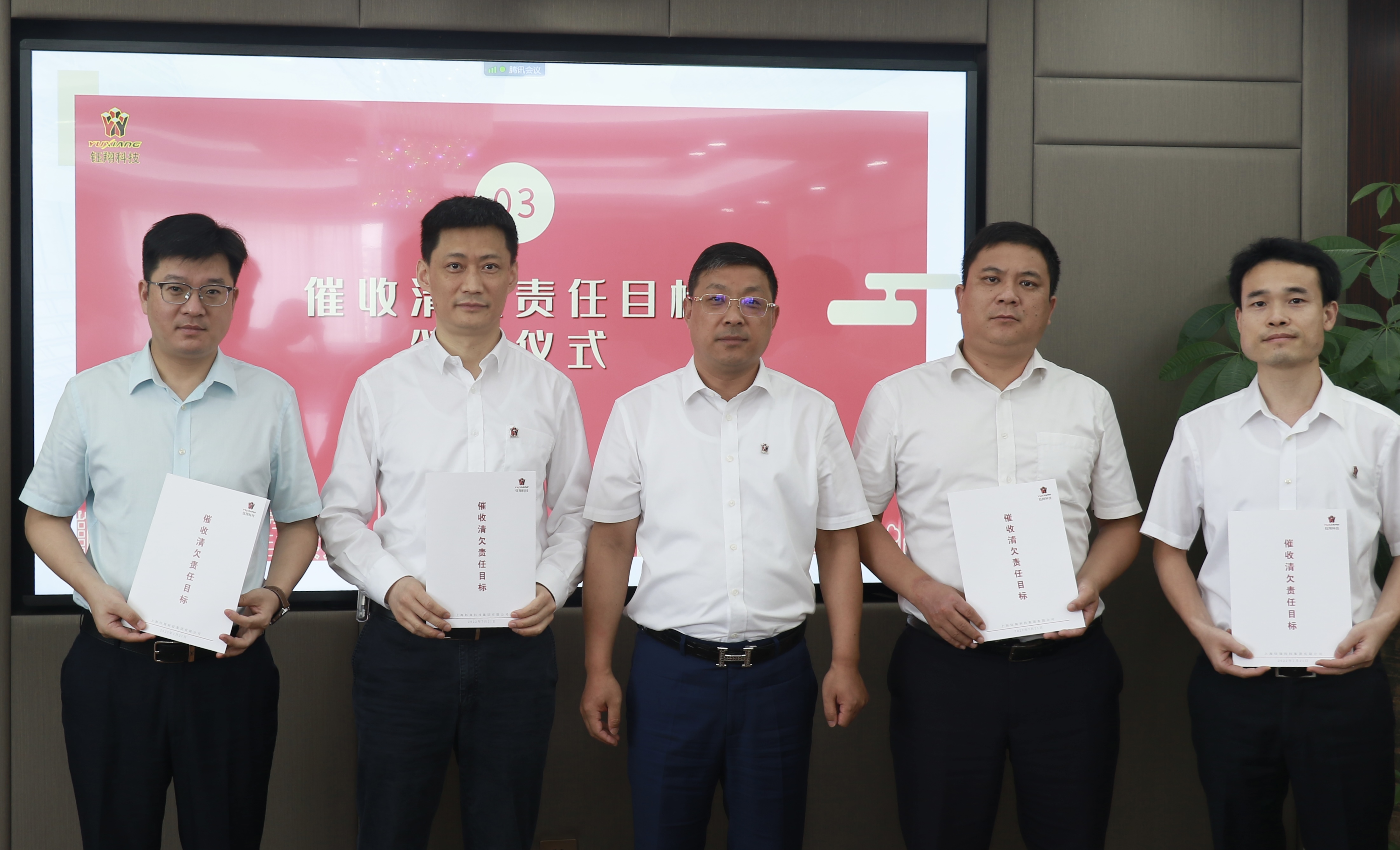 會(huì)上,鈺翔科技集團(tuán)向各子公司頒發(fā)了催收清欠責(zé)任目標(biāo)。