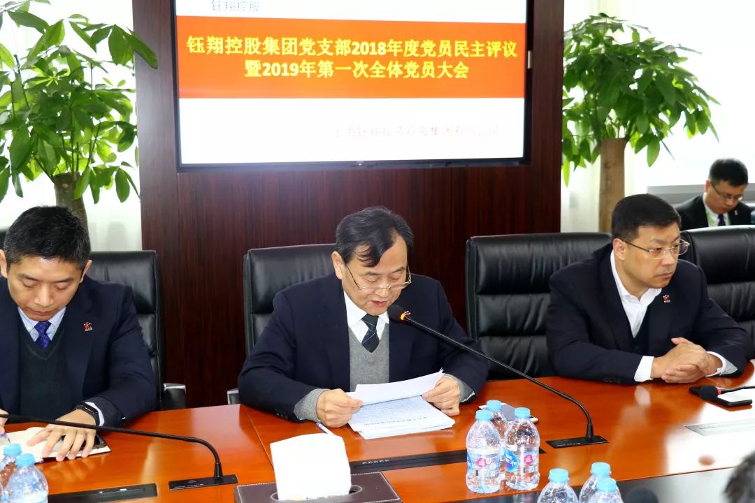 3月14日,鈺翔控股集團黨支部在集團總部召開了2018年度民主評議暨2019年第一次全體黨員大會。會議由集團黨支部書記秦祖煌主持,在滬全體黨員參加了會議,外地黨員以電話會議和微信會議的形式參會。