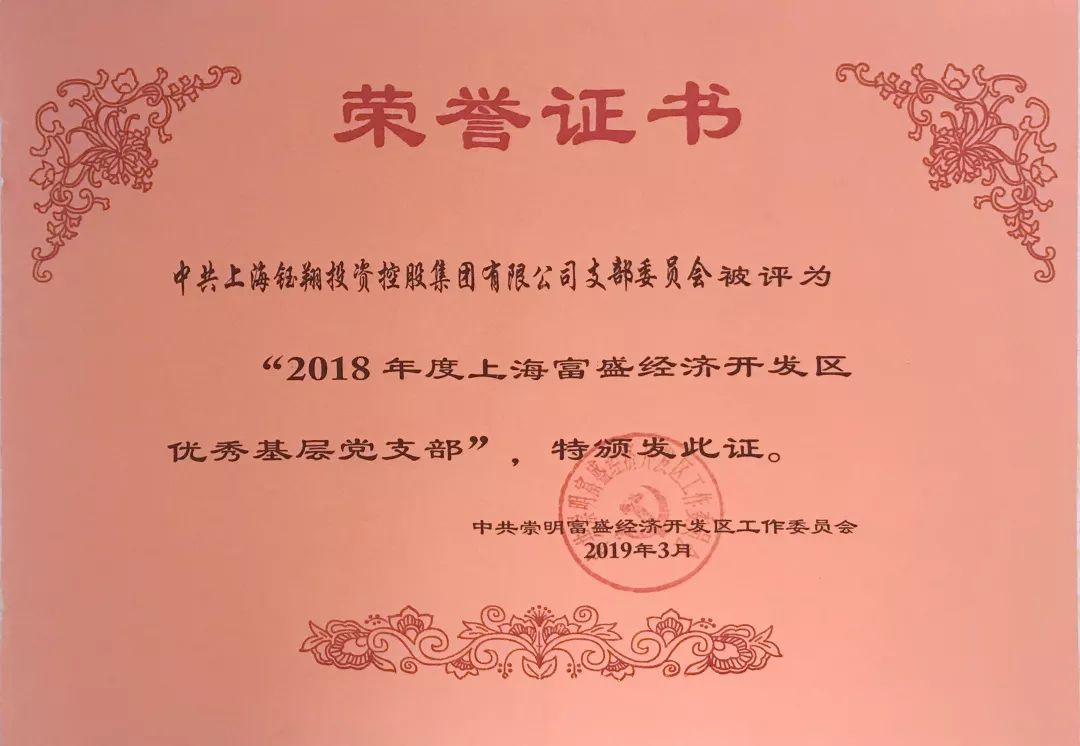鈺翔控股集團(tuán)黨支部被評為2018年度上海富盛經(jīng)濟(jì)開發(fā)區(qū)優(yōu)秀基層黨支部