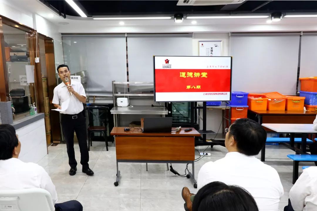 此次“道德講堂”由集團總支副書記朱國興主持,活動首先由集團人力資源部黃琦雁帶領大家學習重溫了集團企業(yè)文化。活動重點開展了《習近平新時代中國特色社會主義思想學習綱要》學習,結合集團發(fā)展實際,翊鏈科技財務總監(jiān)張國峰、集團審計部總監(jiān)戚勇、鈺翔智慧華中區(qū)總監(jiān)周季鋒分別圍繞“發(fā)揚釘釘子精神”、“使紀律真正成為帶電高壓線,全方位扎牢制度的籠子”、“培育和踐行社會主義核心價值觀的偉大意義”等內容,與大家進行了分享。三位演講者結合公司經營發(fā)展實際,通過深入淺出的理論講解,豐富生動的案例分析,為全體參訓人員帶來一場思想交流的盛宴。